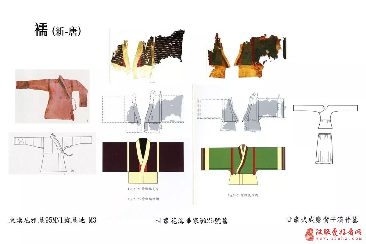 汗襦,衫子未呈现前的贴身衣物,受汗渍,单层,异名有单襦、襜襦。衫子呈现后,和衫子并列了一段时期,如《释名》中同时列有单襦、衫两个词条。单襦与襦没有外形上的区别,因此具备祛(祛指的是汉晋那种卷出来的,20厘米长的袖端,可能准确点叫袖口缘边),在衫子呈现后,大概汗襦功能被衫子替代了,因此以后刻的角度来讲,可以把汗襦并入到衫子里计较。